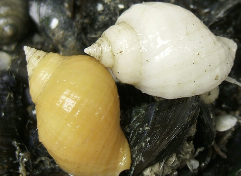With a pointed snail-like shell, dog whelks are found on the lower shore wherever there are barnacles or mussels - their favourite food.