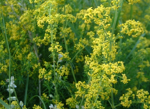 In summer, the 'frothy' flowers of lady's bedstraw can carpet the grasses of meadows, heaths and coasts with yellow and fill the air with a sweet, honey-like scent.